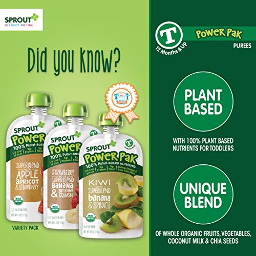 Sprout Organic Baby Food, Stage 4 Toddler Pouches, Apple Apricot Strawberry, Strawberry Banana Squash, Kiwi Banana Spinach Variety, 4 Oz (Pack of 18)