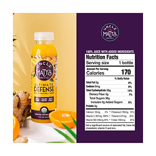 Uncle Matt’s Organic Juice Juice Beverage Plastic Bottle, Orange Defense Tumeric & Probiotics, 12 Fl Oz