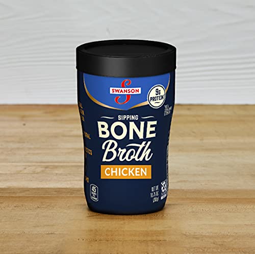 Swanson Sipping Chicken Bone Broth is the nutritious snack that’s warm and savory, with naturally occurring collagen protein. Made from chicken bones, vegetables, herbs and spices, this sipping broth can fit into many different diets. Packaged in a microwavable, sipping cup, our rich bone broth is a simple, flavorful way to add collagen protein to your on-the-go lifestyle. Just heat it up in the microwave fast for a nutritious and 45 calorie on the go snack. Swanson Bone Broth with naturally occurring collagen protein is made from simple, high-quality ingredients you can recognize. We start with real chicken bones, then we cook our broths to perfection to deliver a unique balance of flavor.